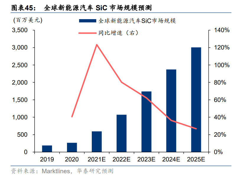 預計 2025 年全球新能源汽車 SiC 市場規模將達到 30.1 億美元